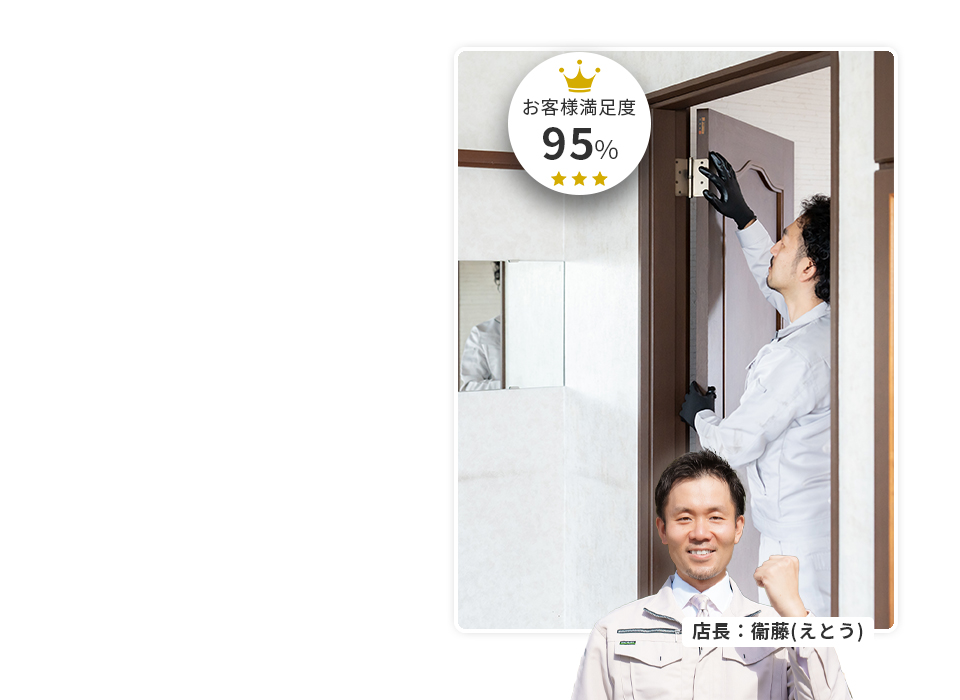 ドアの不具合は、必ずしもドア交換が必要とは限りません。丁番の調整や建付けのズレ、ラッチやノブなど部品の一部交換だけで改善するケースも多くあります。当店では現地で原因を確認し、必要最低限の修理をご提案。無駄な交換をすすめず、費用負担をできるだけ抑えます。