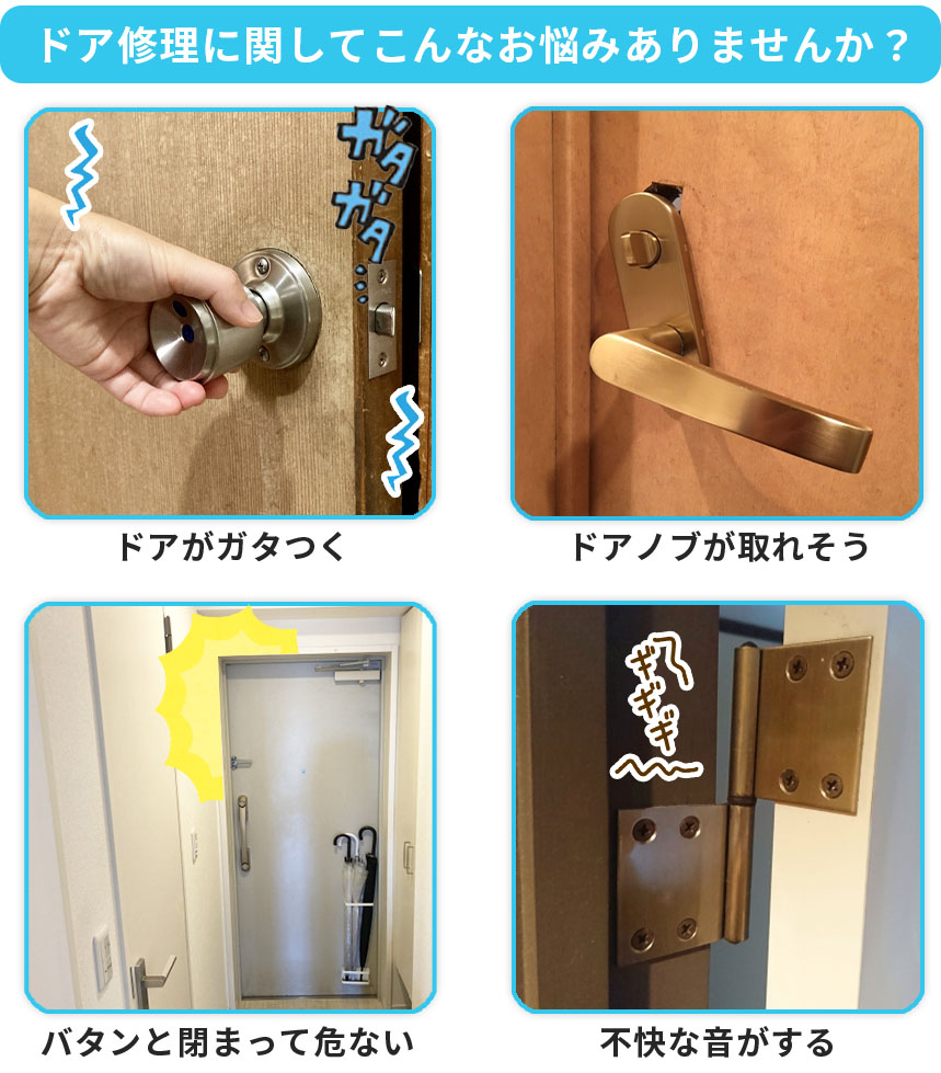 当店では最短即日の対応をしております。ドアが使えなくなると不便なだけでなく、防犯面でも不安が残ります。