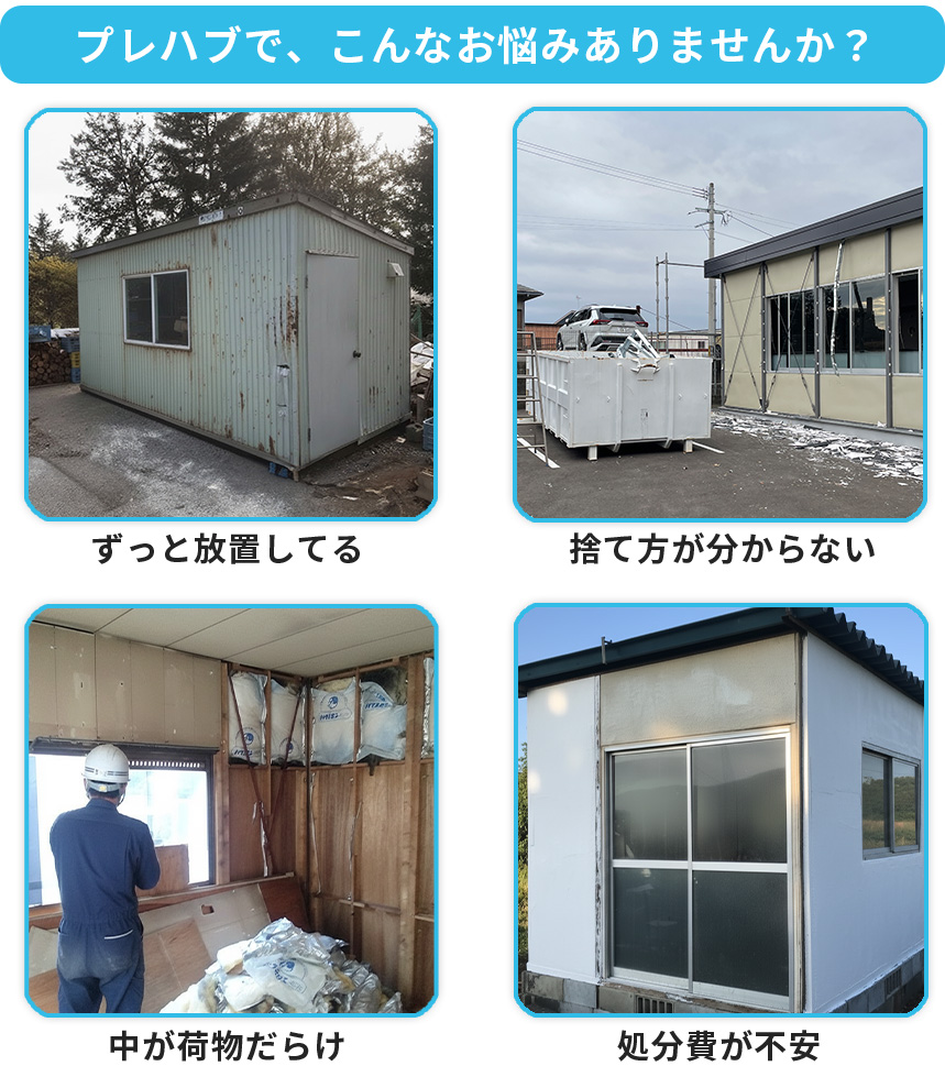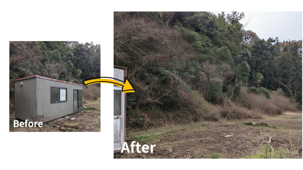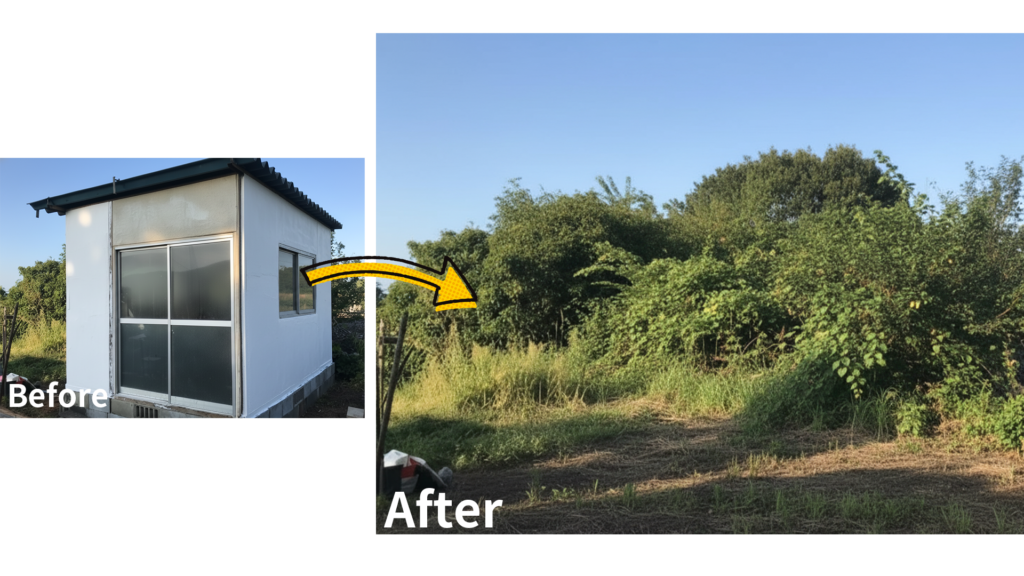 プレハブは、物置・作業場・仮設スペースとして便利な反面、ライフスタイルの変化や経年劣化によって「いつの間にか使わなくなっていた」というケースが少なくありません。いざ撤去しようとしても解体や運び出しが大変で、結局そのまま数年放置されてしまうことも多い設備です。