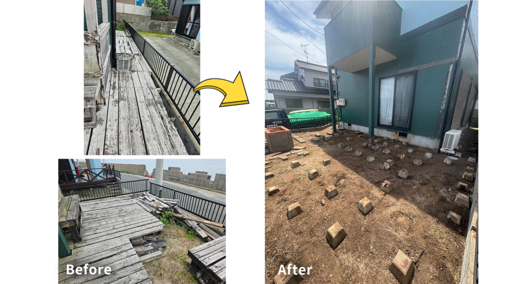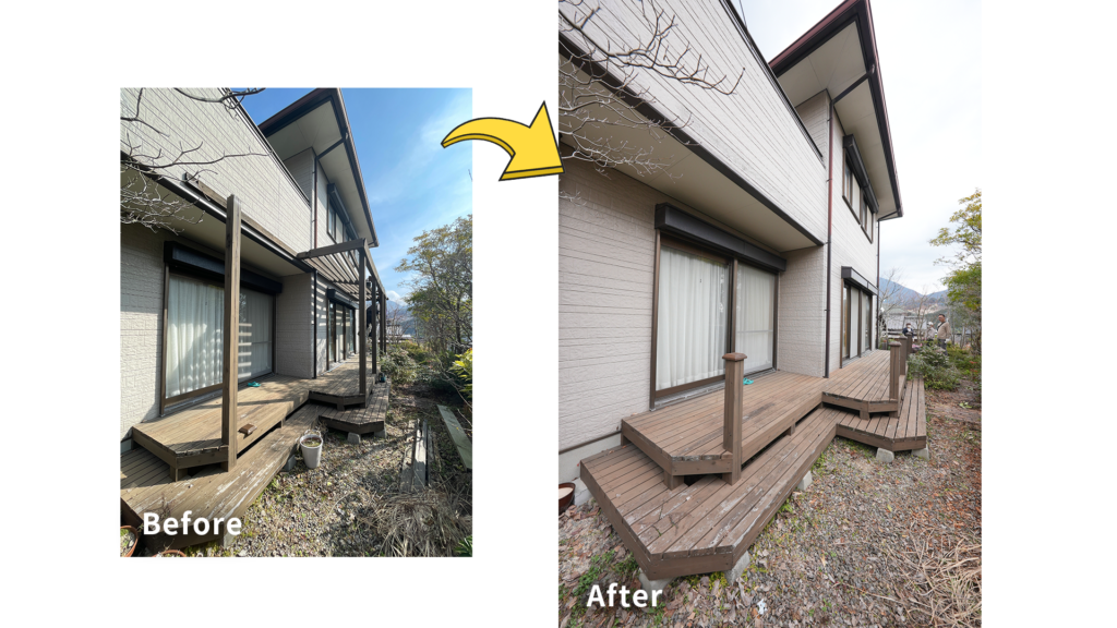 | 工事内容 | ウッドデッキと周りの不用品撤去 |