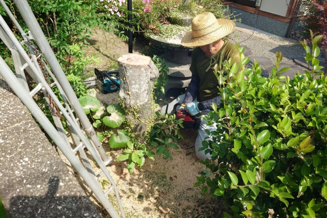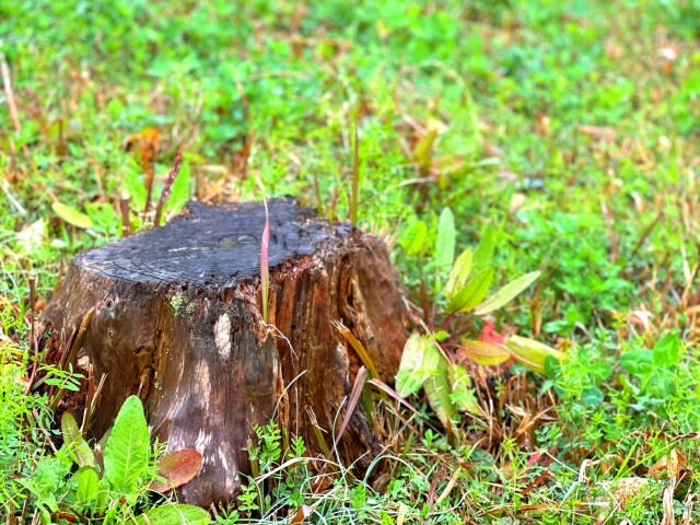 地面から少し出ている切り株はつまずきやすく、特に雑草が生い茂ると見えにくくなります。お子様や高齢の方がいるご家庭では、思わぬケガにつながる可能性があります。