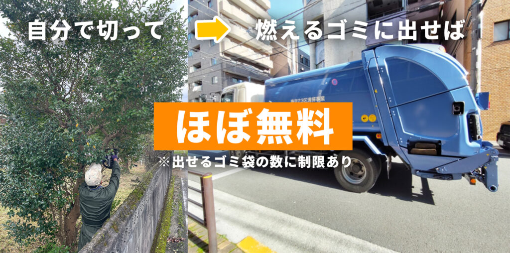 小さな木であれば、自分で伐採し自治体のゴミとして処分することで、実質無料にできるケースはあります。ただし、処分費用や道具代、手間を考えると完全無料になるケースは限られます。