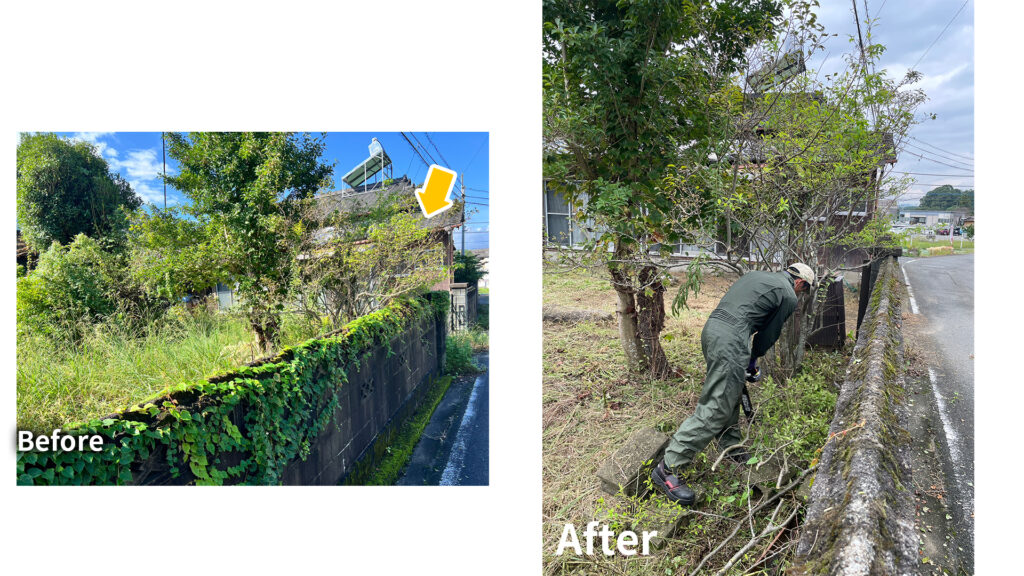 特に道路にはみ出した枝や小さな木は、放置するとトラブルの原因にもなるため、草刈りのタイミングでまとめて依頼するのがおすすめです。