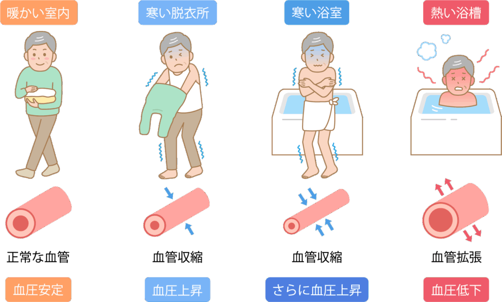 高齢者、血圧・心臓に持病がある方、寒い家に住んでいる方が特に注意が必要です。