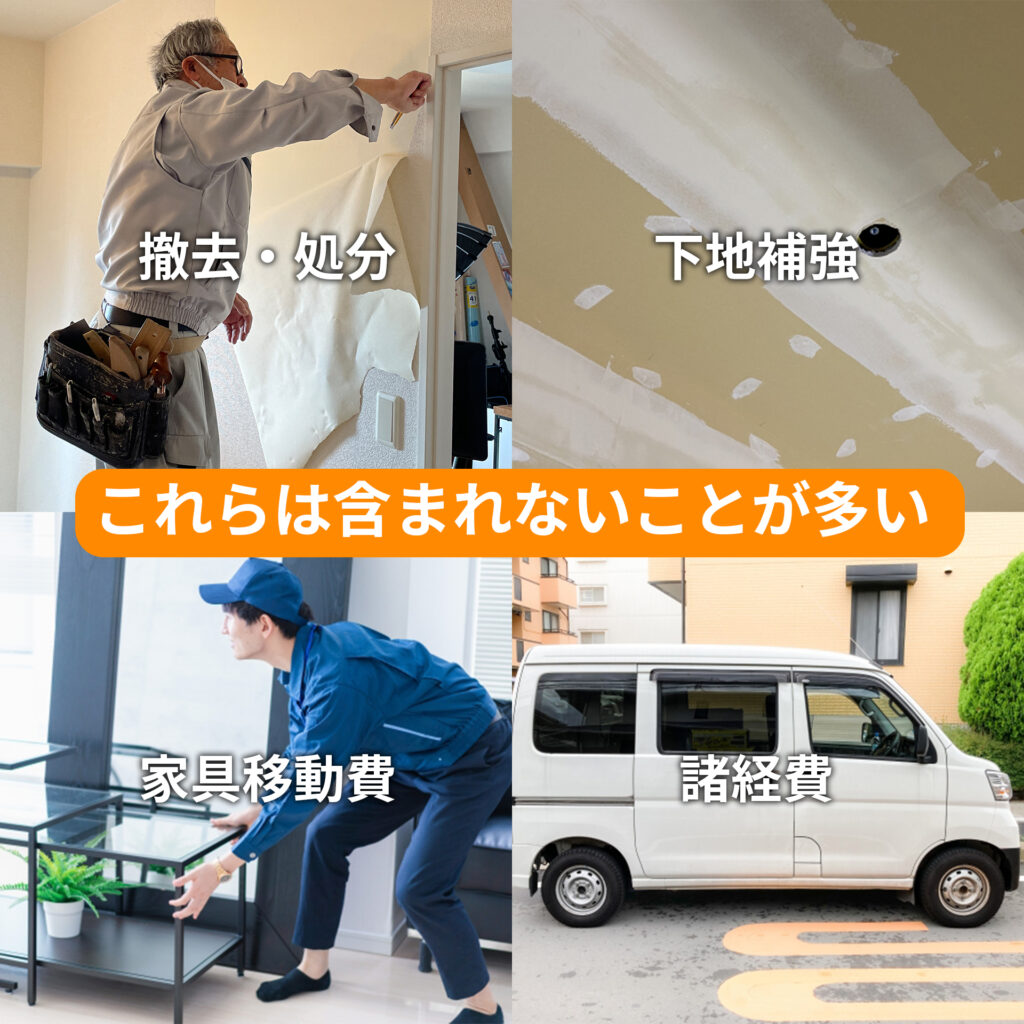 | 含まれないことが多いもの | 既存クロスの撤去・処分費 | 古いクロスを剥がし、処分する費用 |