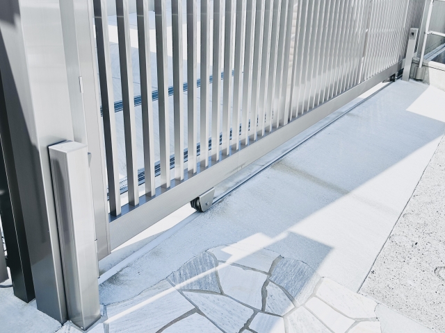 スライド式(引き戸)やアコーディオン門扉が動かない場合、戸車(とぐるま)の外れや破損が多く見られます。