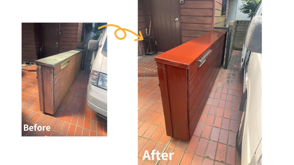 見た目の問題にとどまらず、鉄製門扉の場合は防錆効果の低下にもつながります。ケレン作業(サビ落とし)+再塗装を行えば、耐久性を大きく回復できます。