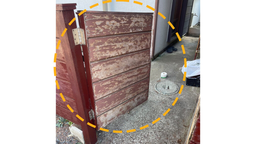 門扉の塗装が剥がれてきた場合は、紫外線・雨風・経年劣化による塗膜の劣化が原因です。