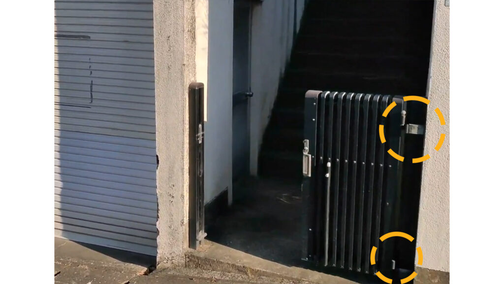ヒンジ部分は門扉の重さを支える重要な構造部です。誤った取り付けや位置ズレがあると、扉の開閉バランスが崩れ、最悪の場合は門扉が外れて転倒する危険もあります。