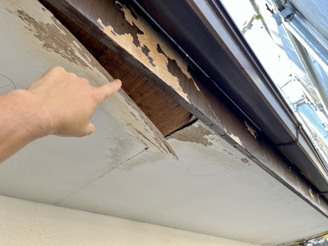 こうした症状がある場合、単なる剥がれではなく「水の問題」が絡んでいる可能性があります。このケースでは、軒天だけ直しても再発することがあり、雨の侵入口の特定が重要になります。