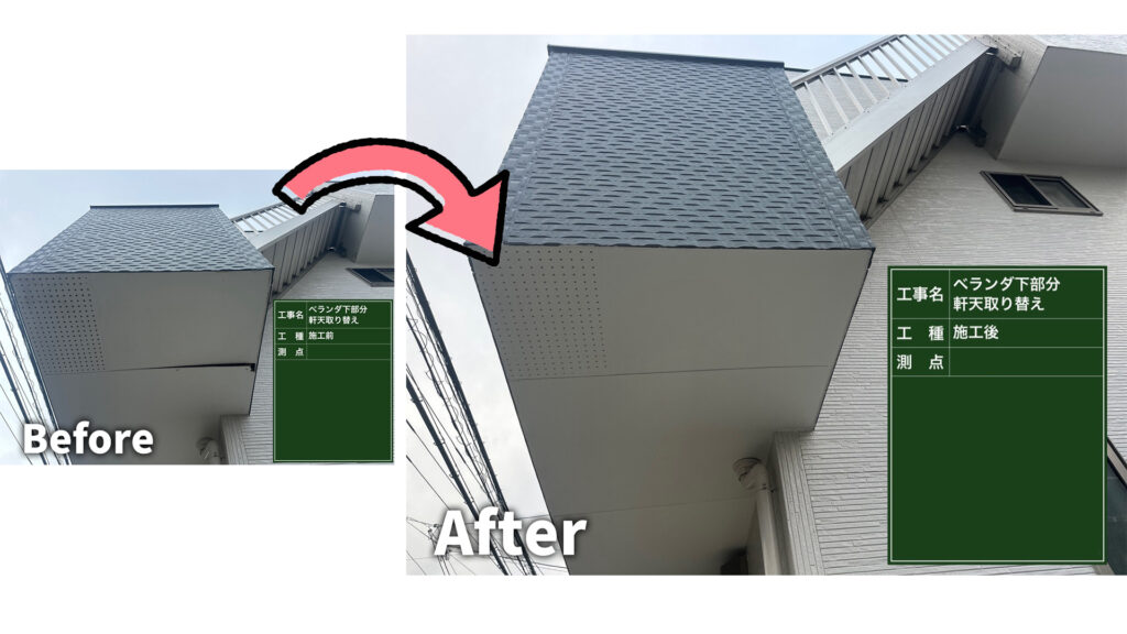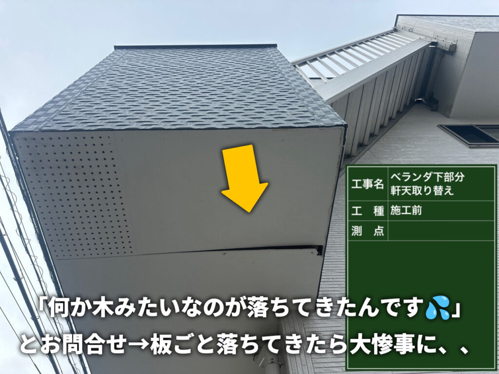 内容ベランダ下軒天 一部交換工事(簡易足場)