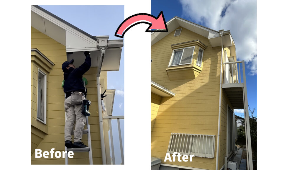 軒天の剥がれは見た目だけの問題ではなく、落下や雨水の侵入、下地の腐食につながることもあります。この記事では、剥がれる原因・修理方法・費用目安までをわかりやすく解説します!ぜひ最後まで読まれてください。