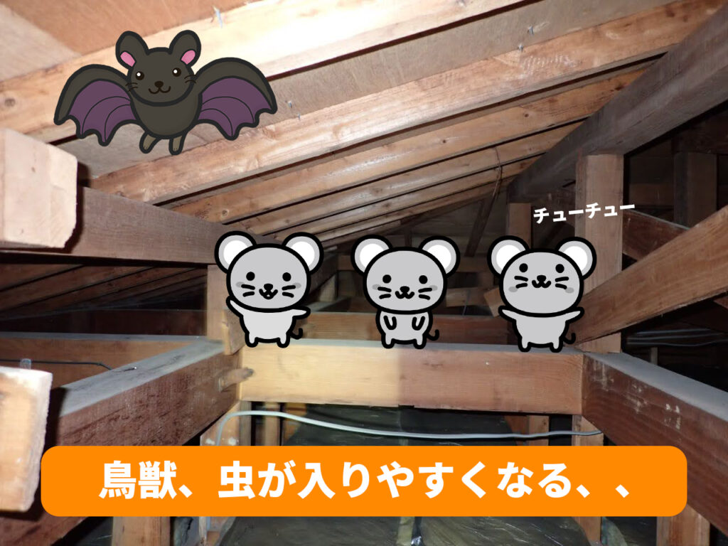 • 屋根裏への鳥・コウモリ・ネズミ侵入