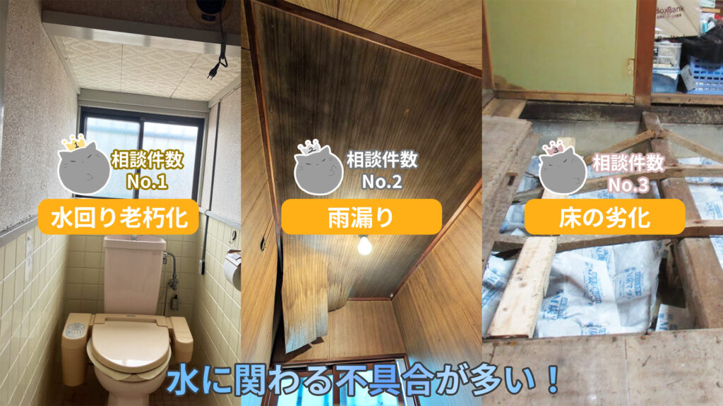 特徴:雨漏りや床ブヨなど、“住める状態”への回復が目的。