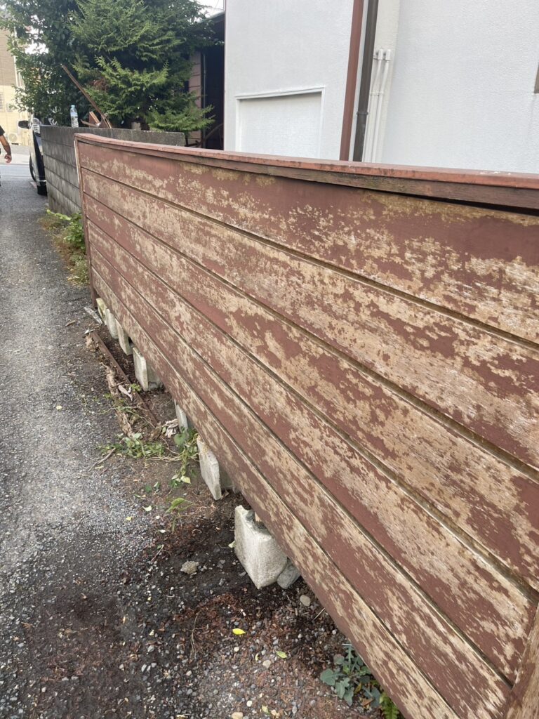 | 内容 | ウッドフェンス(板塀)の補強と塗装工事 |