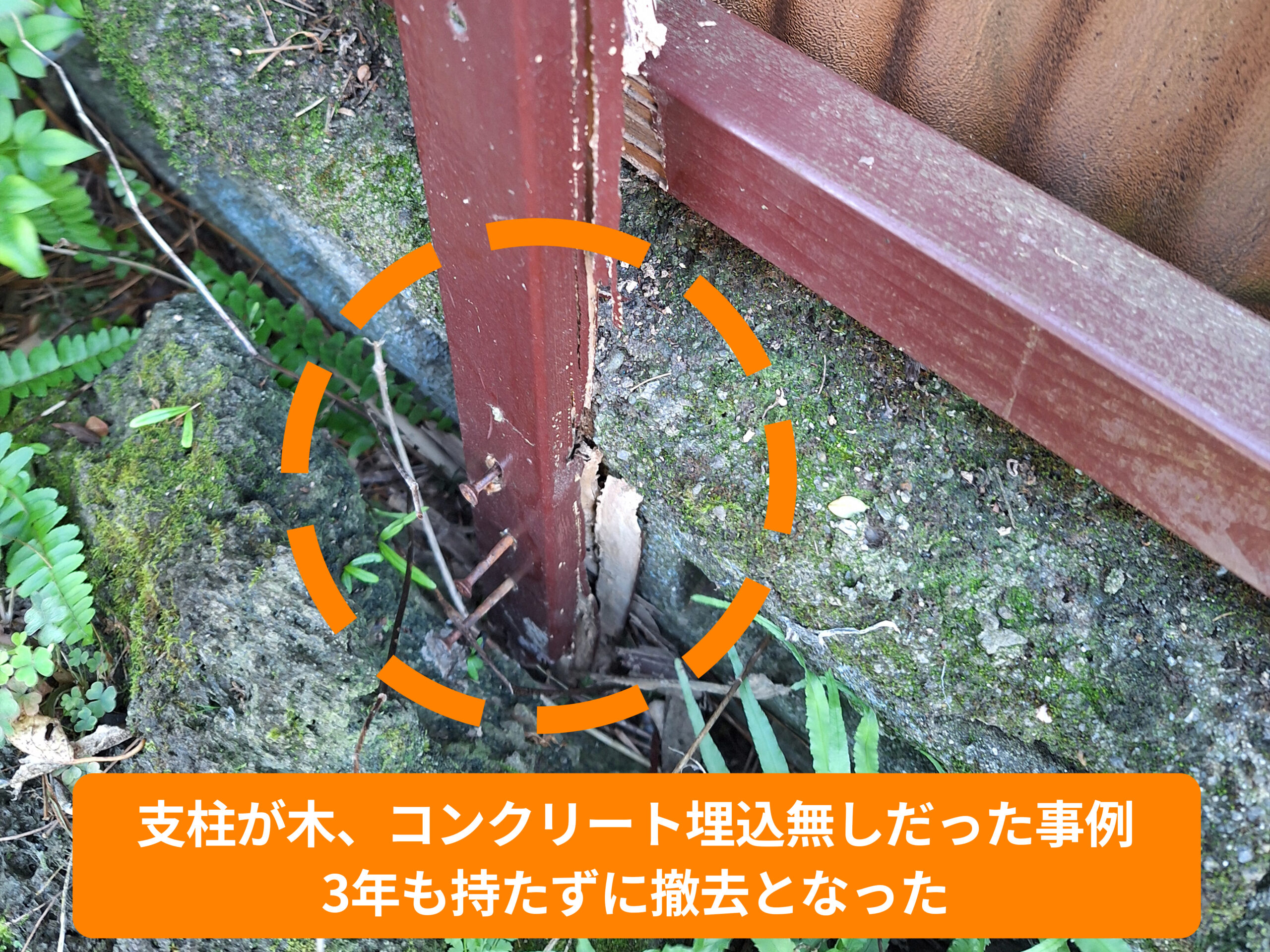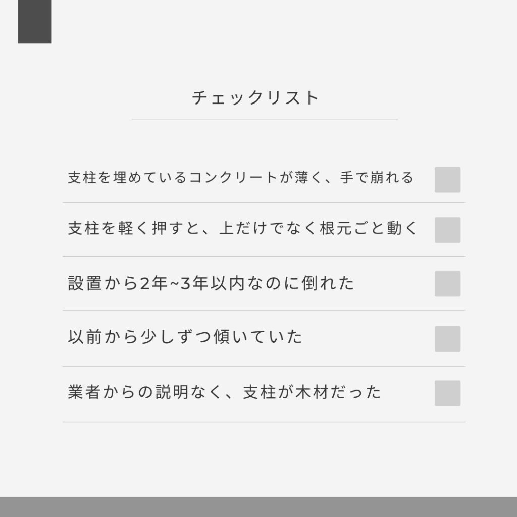 - 業者から特に説明がないまま、支柱が木材だった