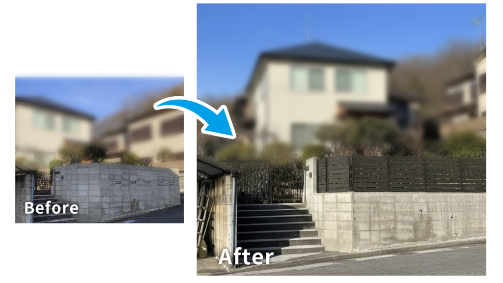 | 内容 | ブロック塀撤去とウッドフェンスの新設工事 |
