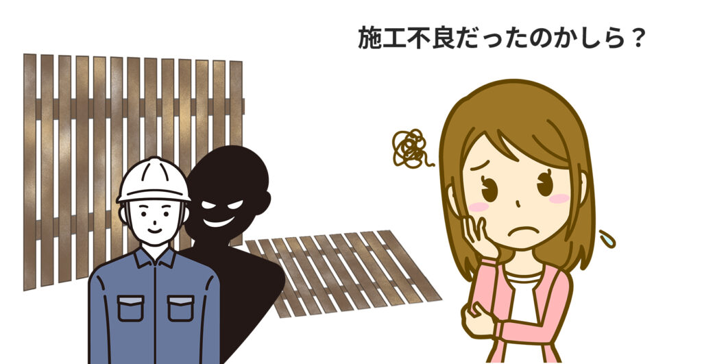 ウッドフェンスが設置から2〜3年以内に倒れた、または明らかに傾いてきた場合は、一度、施工した業者に相談してみる価値があります。