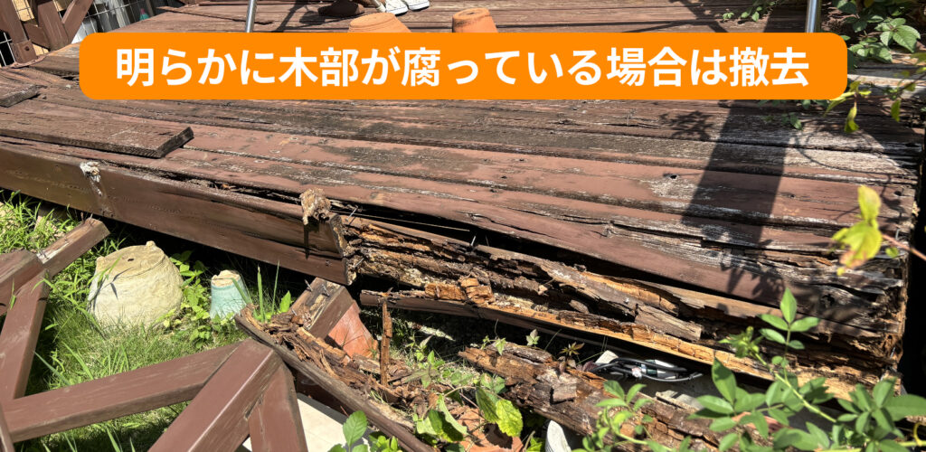 - 木材が腐っていたり、触るとボロボロ崩れる