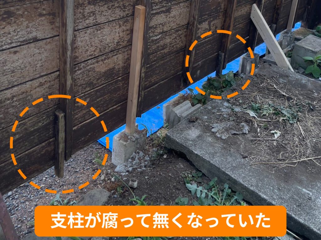 この状態で部分修理だけを行っても、別の場所から再び倒れてしまうことが多く、結果的に費用も手間もかかってしまいます。