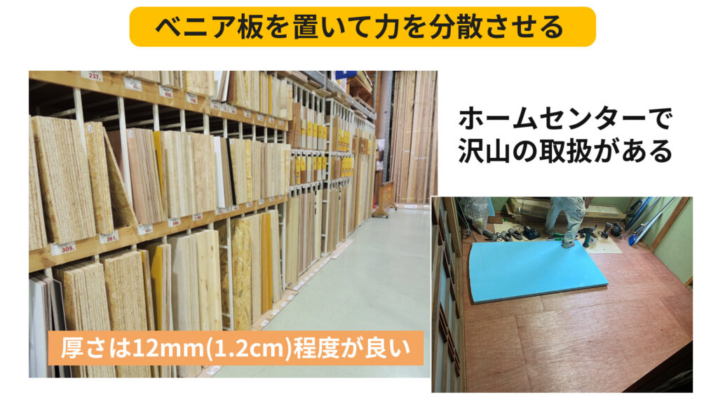 ①ベニヤ板・コンパネで荷重を分散させる
