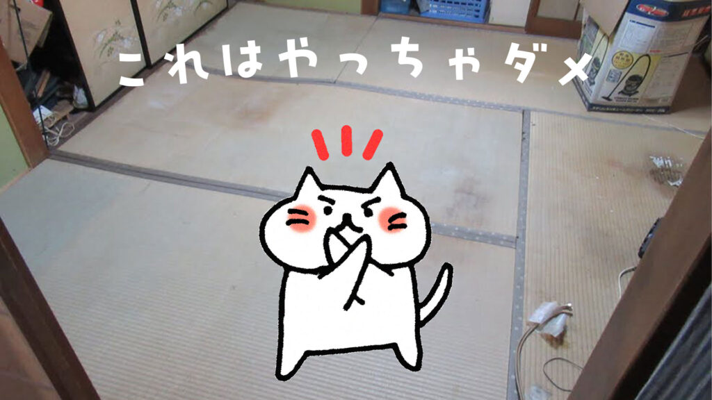→ ベニヤ板などを敷いても沈みが続く場合は、根太(床を支える部材)が傷んでいる可能性が高いです。