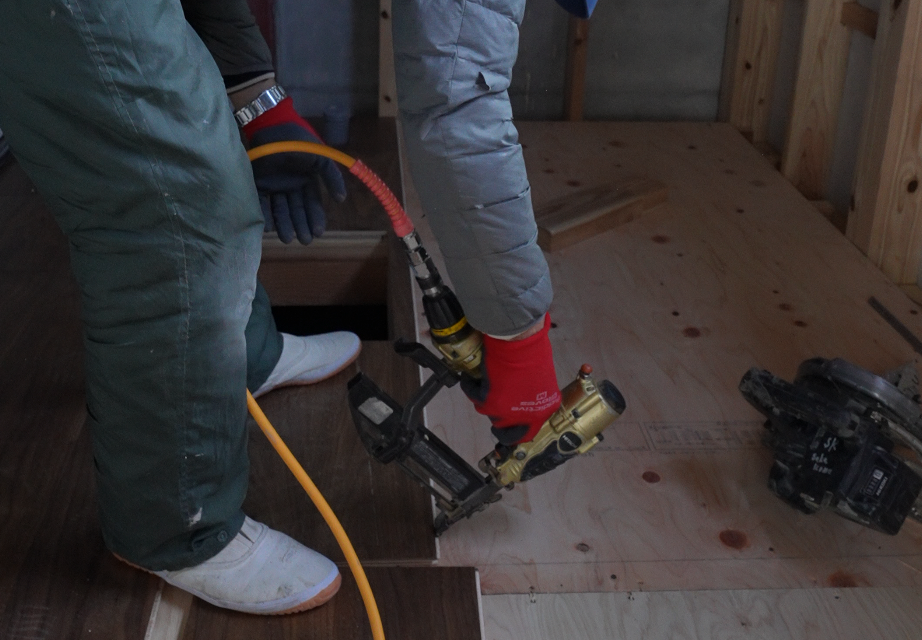 大工さんが床鳴りなどの修理で釘やビスを打ちこむことがあるのですが、これを見よう見まねでやると大変危険です。
